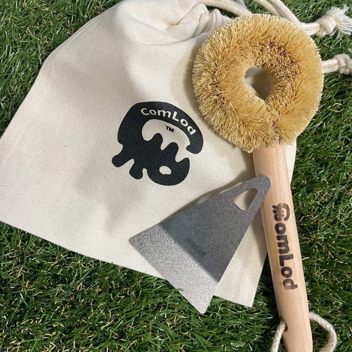 ピザ釜で焼き上げる至福のひとときを、美味しく保つための「comたわしお掃除セット」。ピザを焼いた後も、あなたの楽しい時間を支えてくれます。